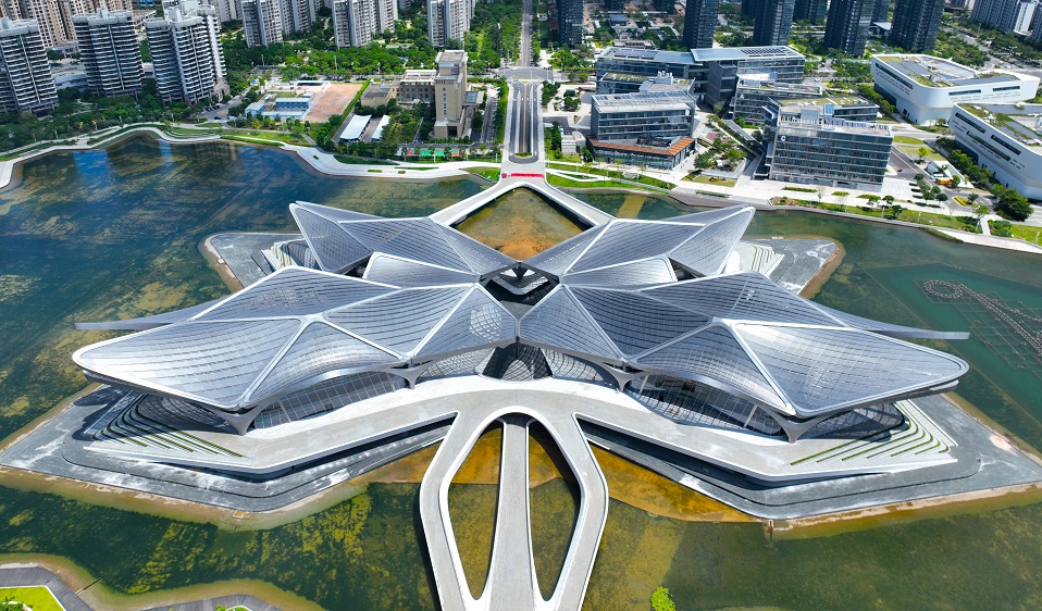 由中國三冶承建的珠海金灣市民藝術(shù)中心工程為國際著名建筑大師扎哈?哈迪德(Zaha Hadid)遺作。其單層鋼網(wǎng)格屋蓋呈“蝶形”,空間雙曲高低起伏、落差大、曲率多變,雙曲小截面箱型屋蓋次梁無一重樣,宛如蝴蝶浮于水面之上,又如鯤鵬展翅騰飛,極具建筑藝術(shù)美感,已成為珠海市新的城市文化地標(biāo)、大灣區(qū)文化藝術(shù)交流的重要載體。