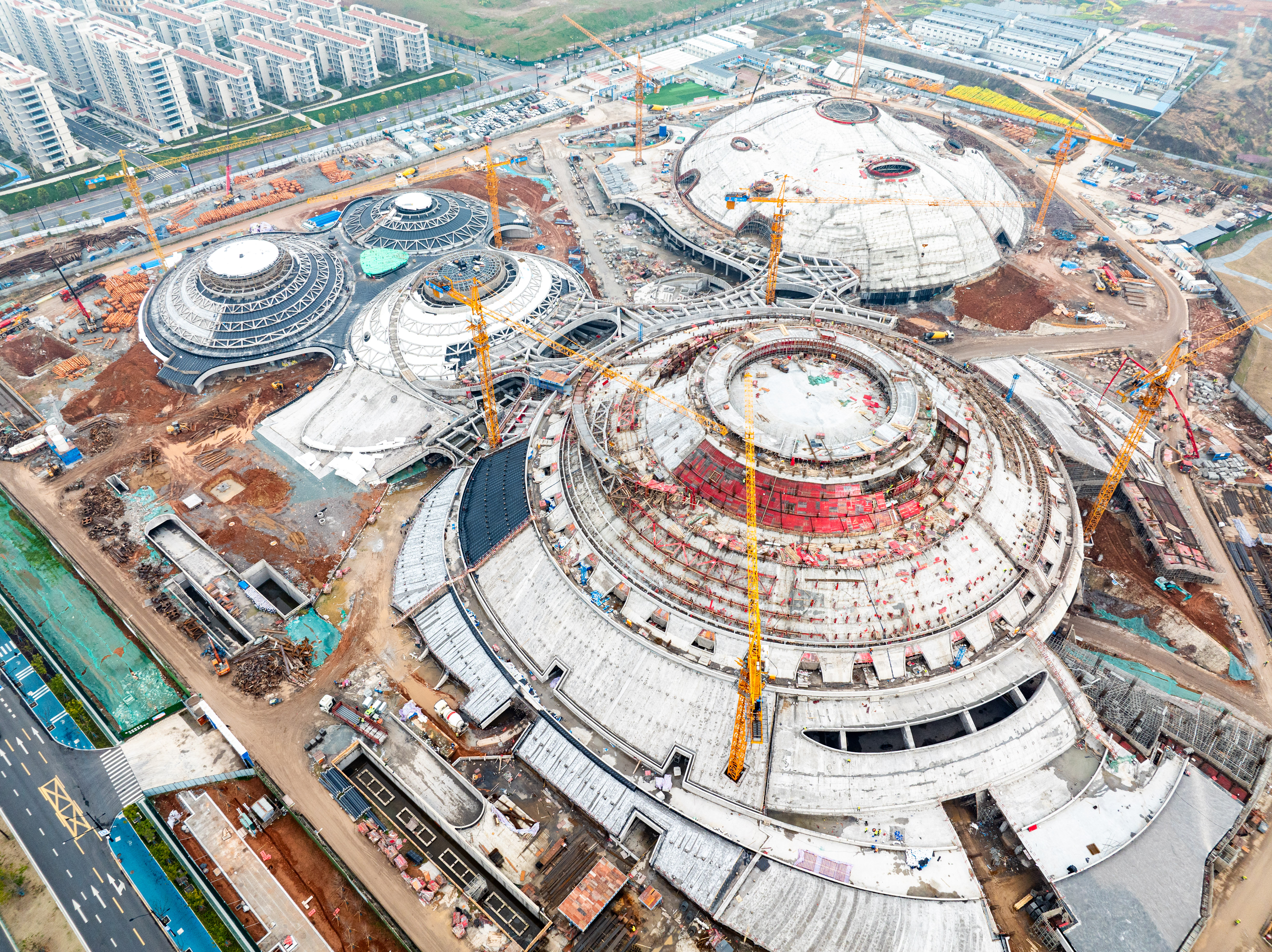 由上海寶冶承建的衢州市體育中心工程——三館及配套工程項(xiàng)目是浙江省重點(diǎn)民生工程,也是浙江省十八運(yùn)的主場館。以“山水建筑+生態(tài)低碳+運(yùn)動主題”為設(shè)計(jì)理念。項(xiàng)目總用地面積139347平方米,總建筑面積165212.85平方米。涵蓋超大直徑預(yù)應(yīng)力清水環(huán)梁結(jié)構(gòu)、世界最大跨度密肋板殼混凝土屋蓋結(jié)構(gòu)等技術(shù)難題。建成后將與衢州體育場構(gòu)成世界最大覆土建筑群。