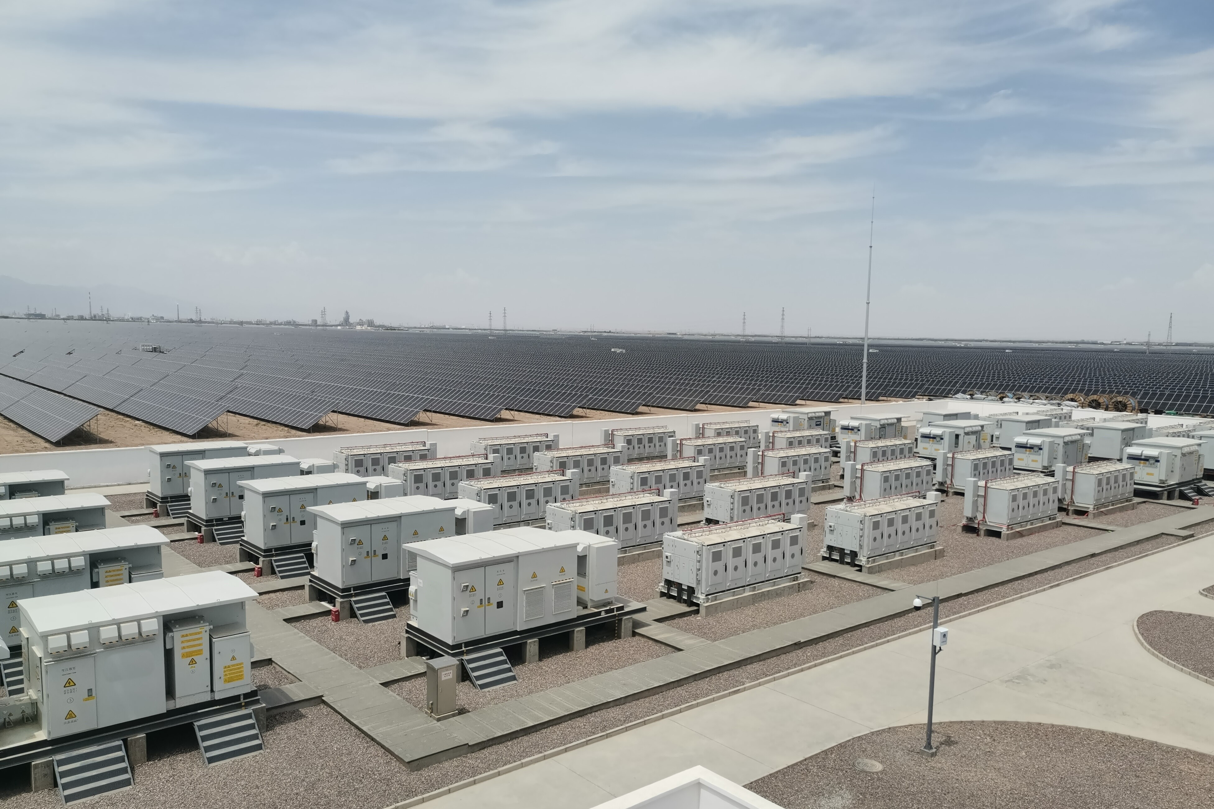 由中冶京誠承建的阿拉善電網(wǎng)側(cè)儲能電站項(xiàng)目是阿拉善盟儲能工程領(lǐng)域的一項(xiàng)重大突破,規(guī)劃建設(shè)10萬千瓦儲能裝機(jī)、40萬千瓦時(shí)儲能容量。項(xiàng)目僅用88天完成建設(shè)攻堅(jiān),實(shí)現(xiàn)全容量并網(wǎng)及動態(tài)調(diào)試,成功通過測試轉(zhuǎn)商。項(xiàng)目投用后充分發(fā)揮削峰填谷作用,緩解電力供需矛盾,對優(yōu)化地區(qū)能源結(jié)構(gòu)、加速“雙碳”目標(biāo)落地具有重要意義。